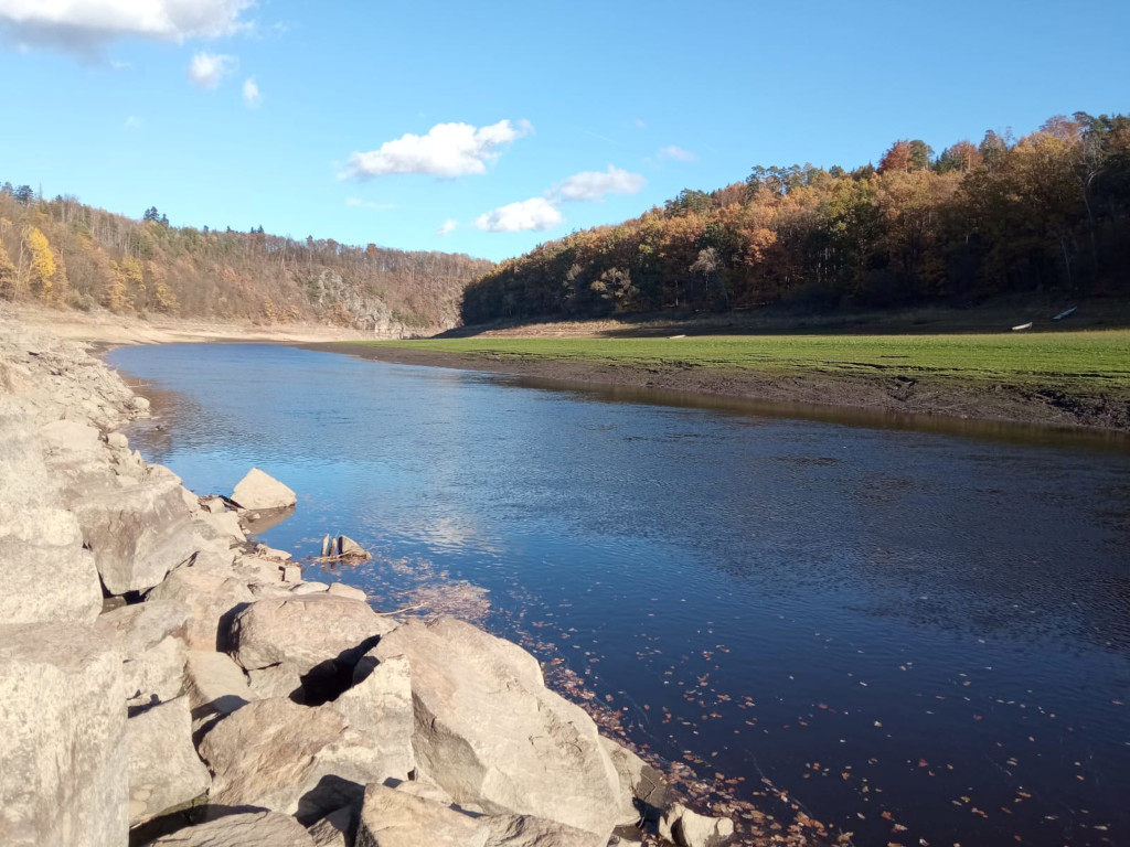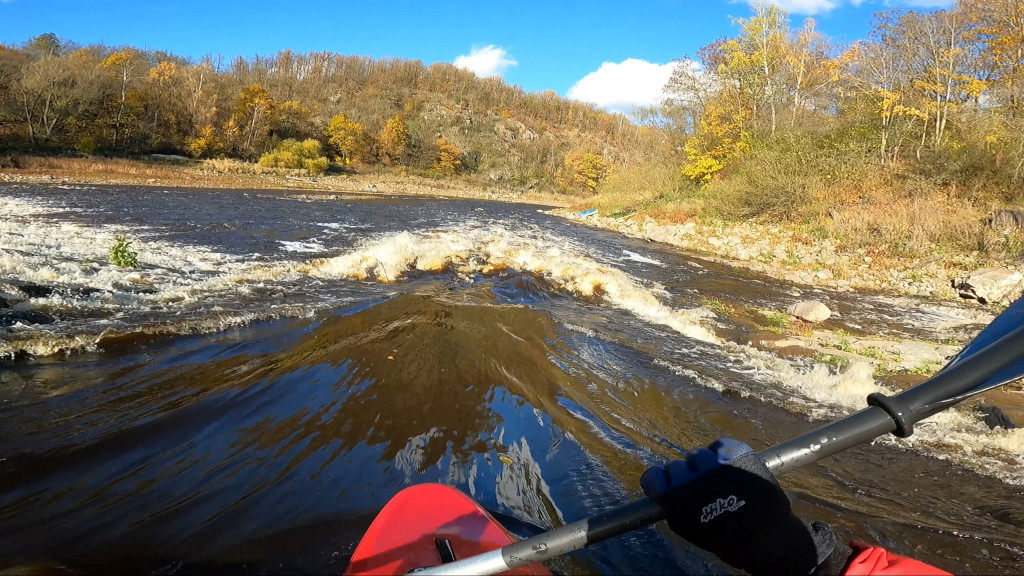 end of dam přepadu left and follows 50 m weir drop navigable cvičná rapid 150 m 0,6 km (GPS: 49.258107453,13.881772757) (GPS: 49.2580933,13.8818108) |