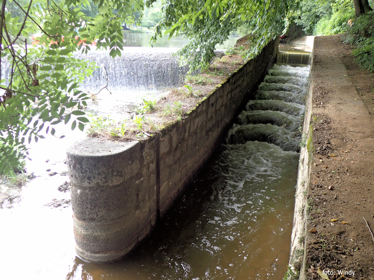 damage weir with middle sluice portage right height (m) 1,4 canal left, jez Brejlov (obvykle sjízdný propustí nebo přes korunu) 0,8 km |
