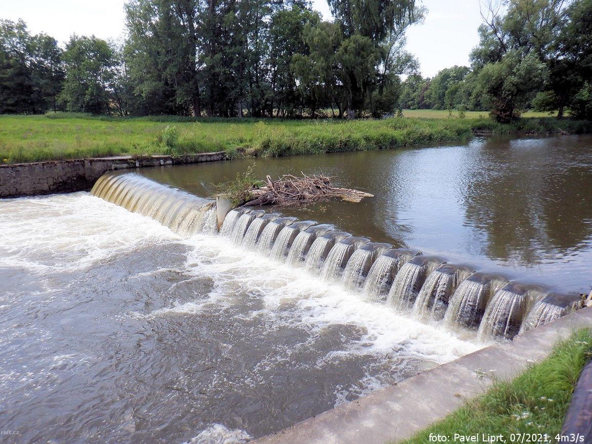 r.km 71,5 Pevný, přímý jez, dlouhý 29,39 m. Jez je ostrůvkem rozdělen na dvě části