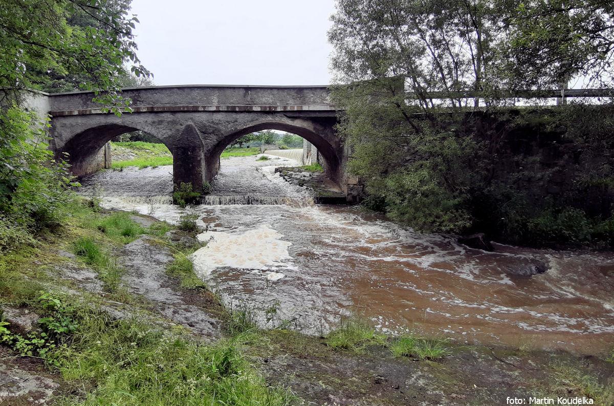 na rkm 23,7 začala stavba lešení kvůli opravě mostu přes Úslavu na silnici Šťáhlavice-Kornatice, plá ...
