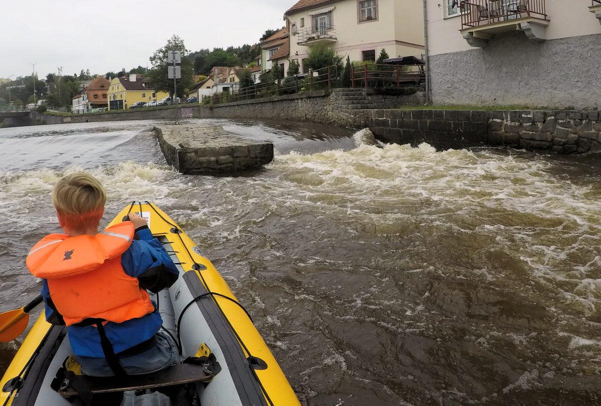 r.km 284,9 Na Rechlích 07/07/2022, stav 40 m3/s v Krumlově