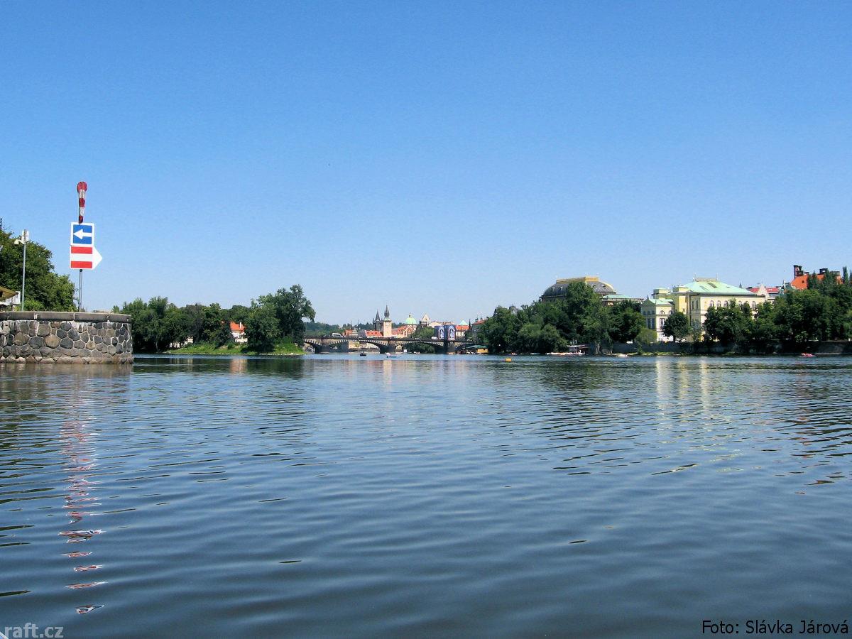 r.km 53,1 Staroměstský jez v pozadí s Karlovým mostem