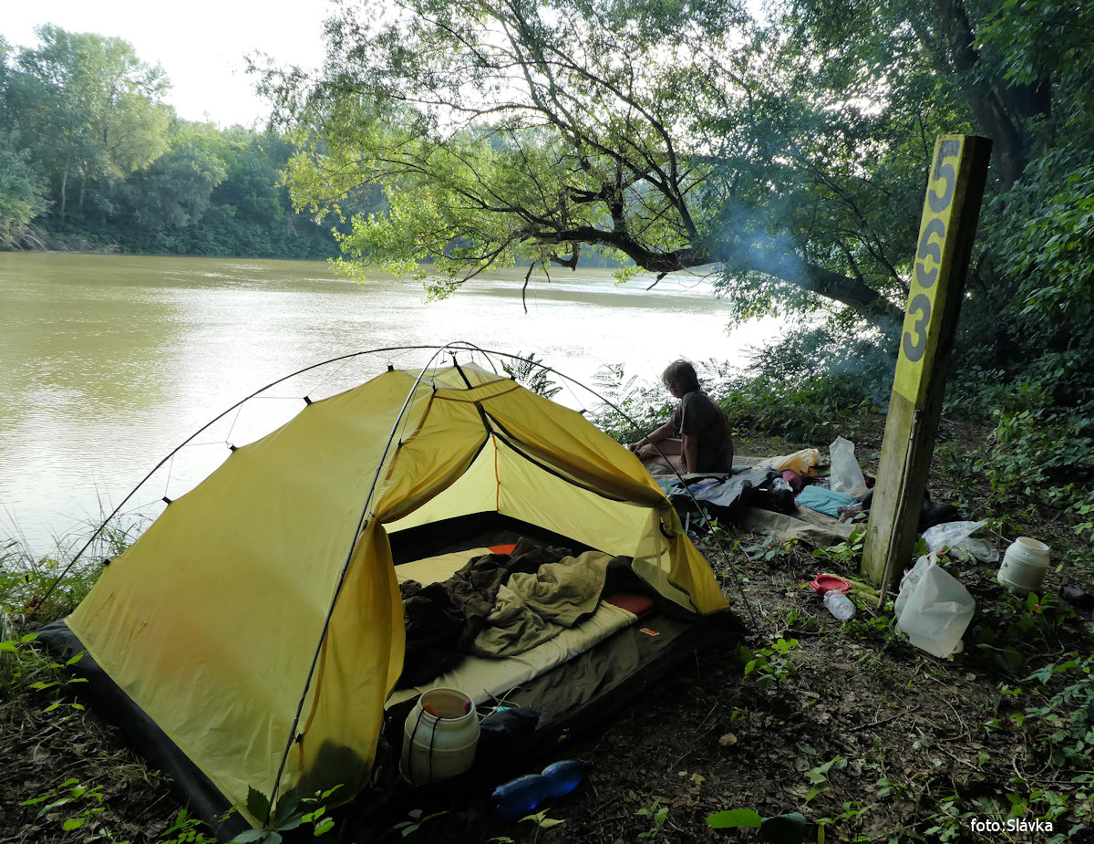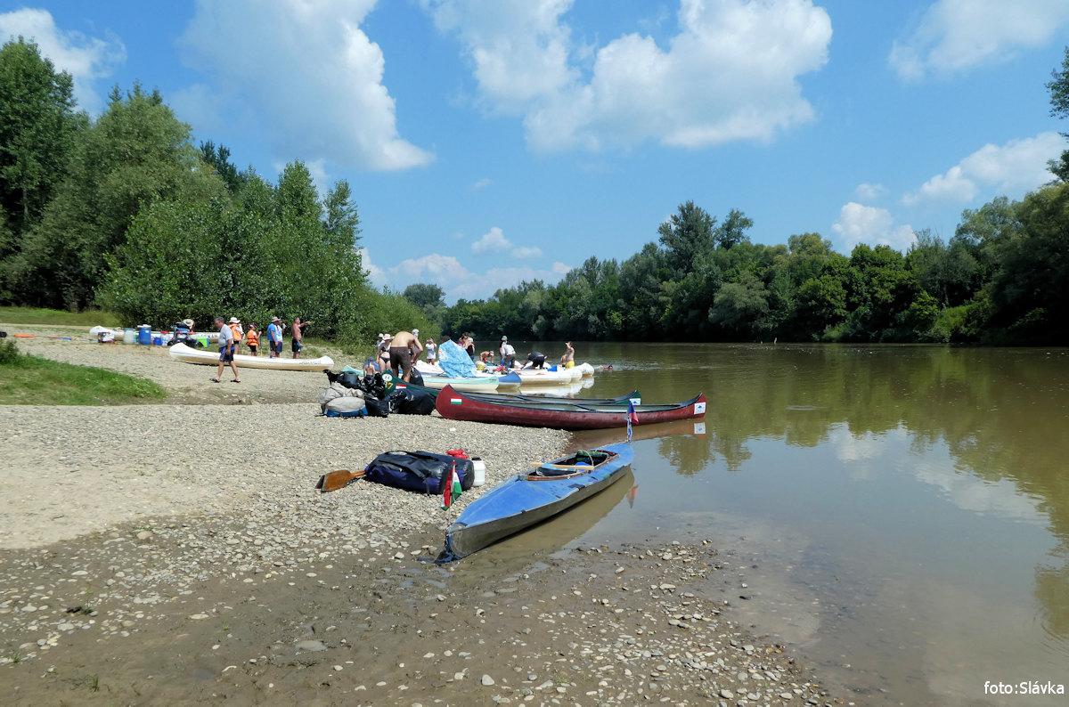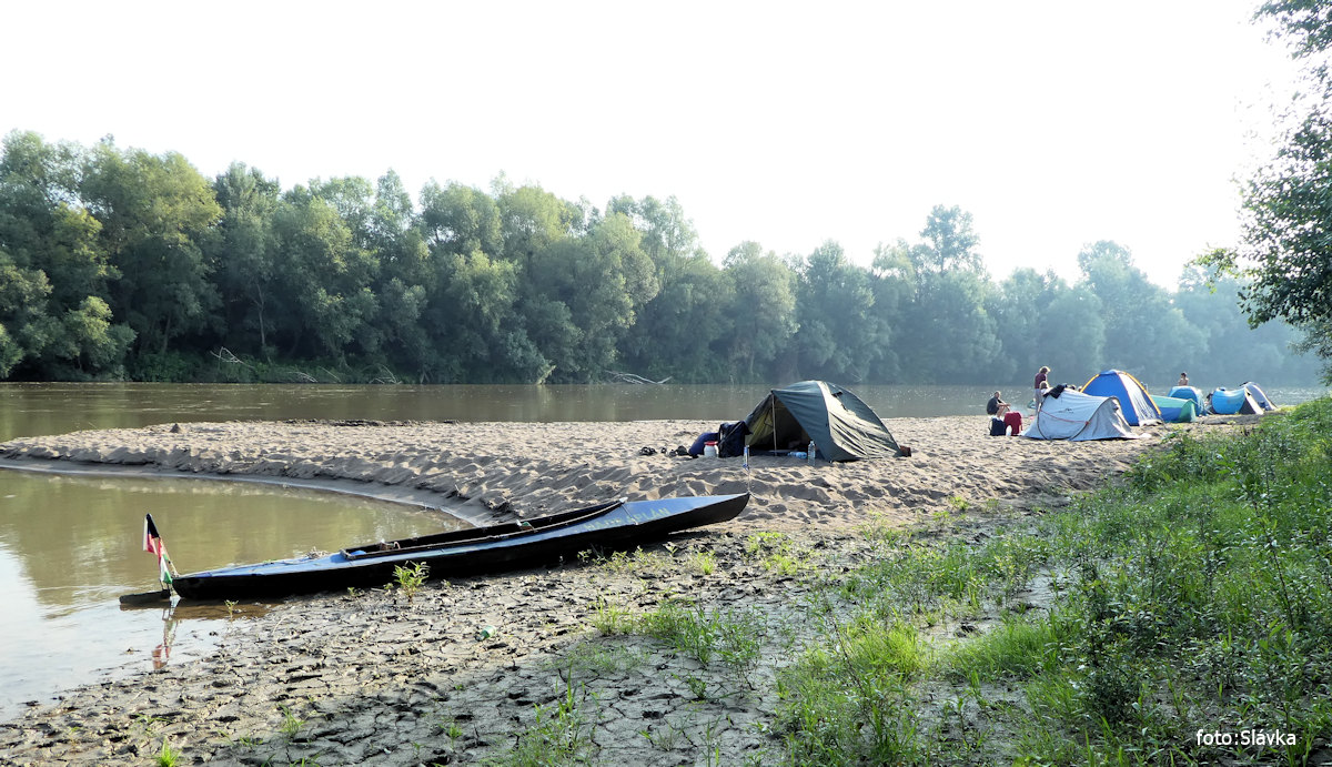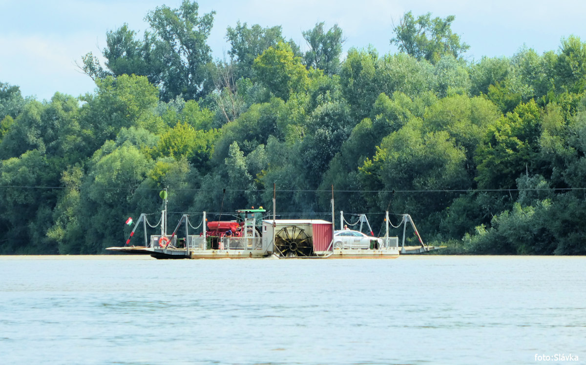 přívoz na laně, kontrola pohraniční říční policie (z lodi), camps kiosk vl 8,0 km |