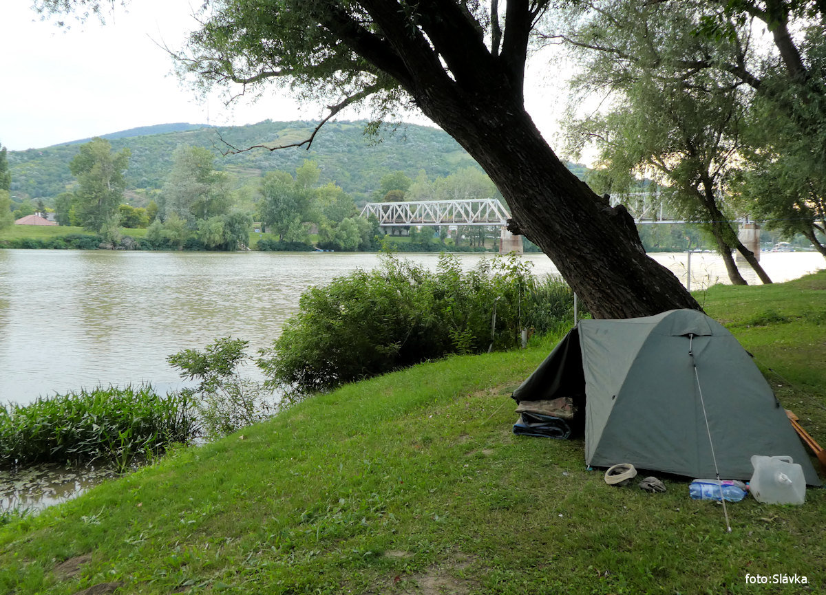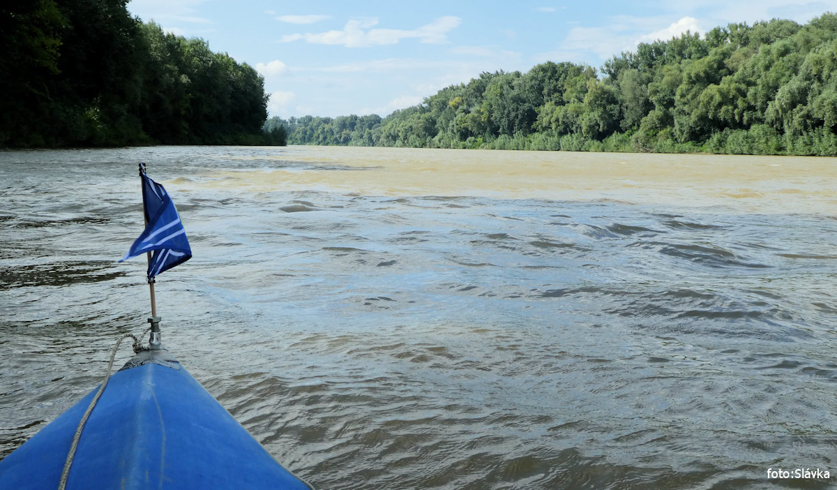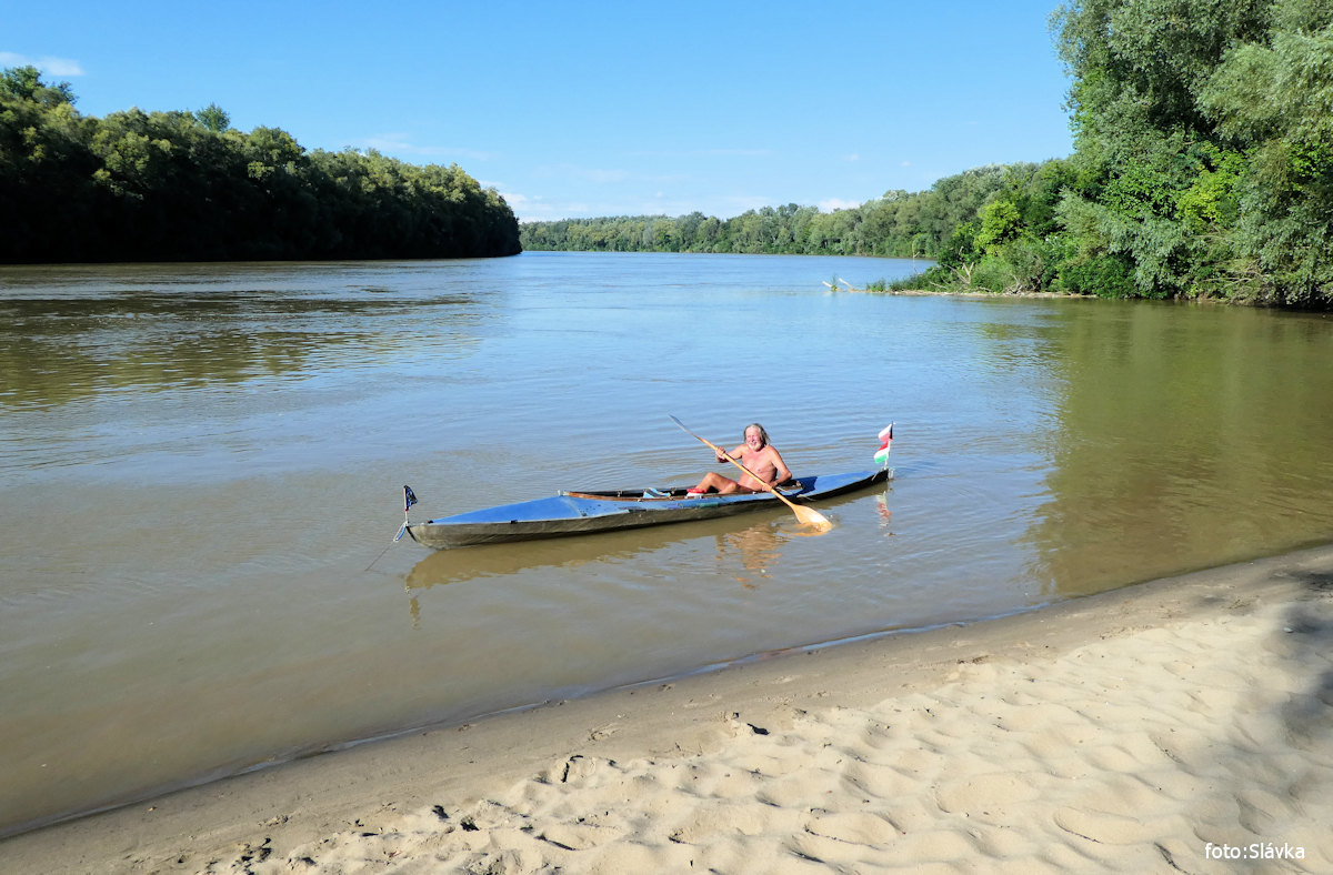 přívoz na laně, kontrola pohraniční říční policie (z lodi), camps kiosk vl 8,0 km |