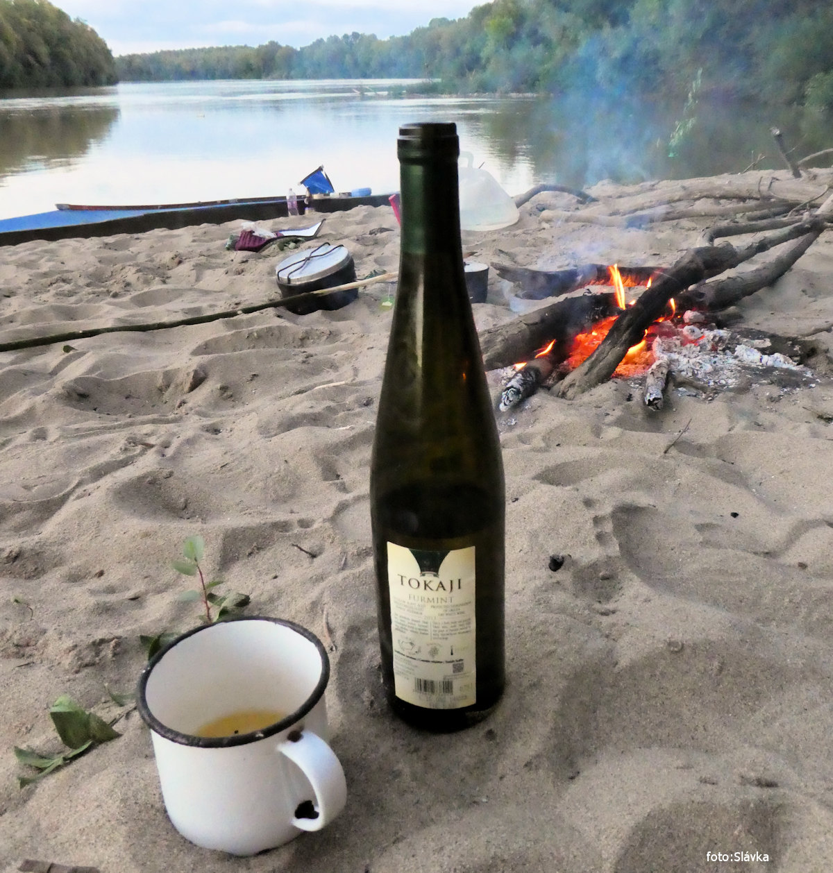 přívoz na laně, Tuzsér left, obchod a kiosk restaurant relativně blízko and follows 100m camps left, (rozbitý, bufet má dopoledne zavřeno)  14,3 km |