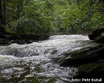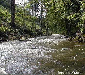Bystřice volně průjezdná z Domašova do Hrubé Vody. V nájezdu do "Ďáblova chřtánu" částečně trčí zlev ...