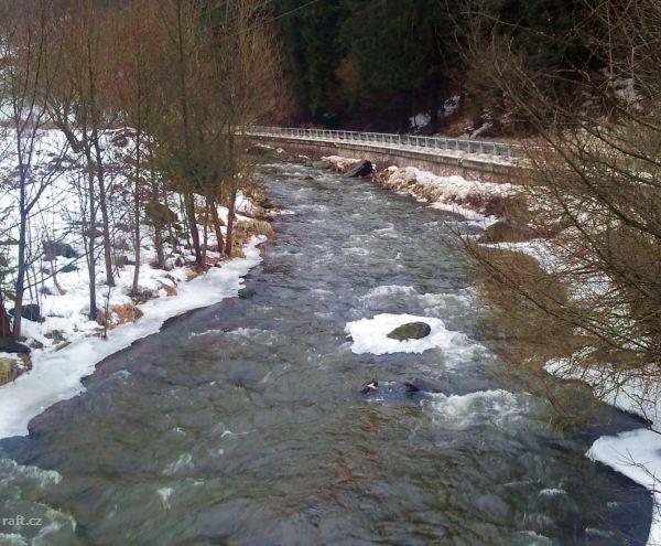 15.5.2016 za stavu 145 cm v Raškově je úsek 305,6-302,5 sjízdný jen s občasným přetahováním (málo vo ...