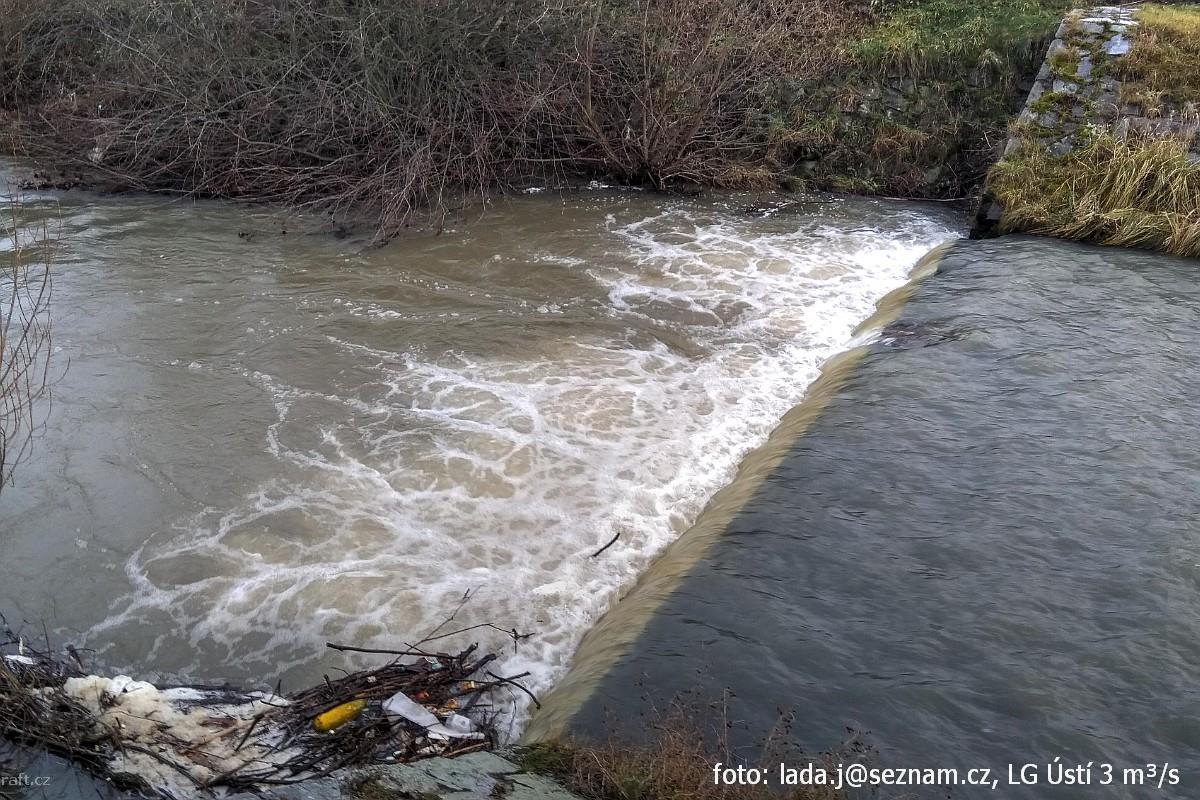 r.km 1,1 Stupeň, vodočet Ústí 106 cm a 5,8 cbm/s