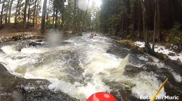 V dolním úseku, 3,5km pod jezem Březina, tedy v místě těsně za osadou Šárka kde řeka tvoří velký ost ...
