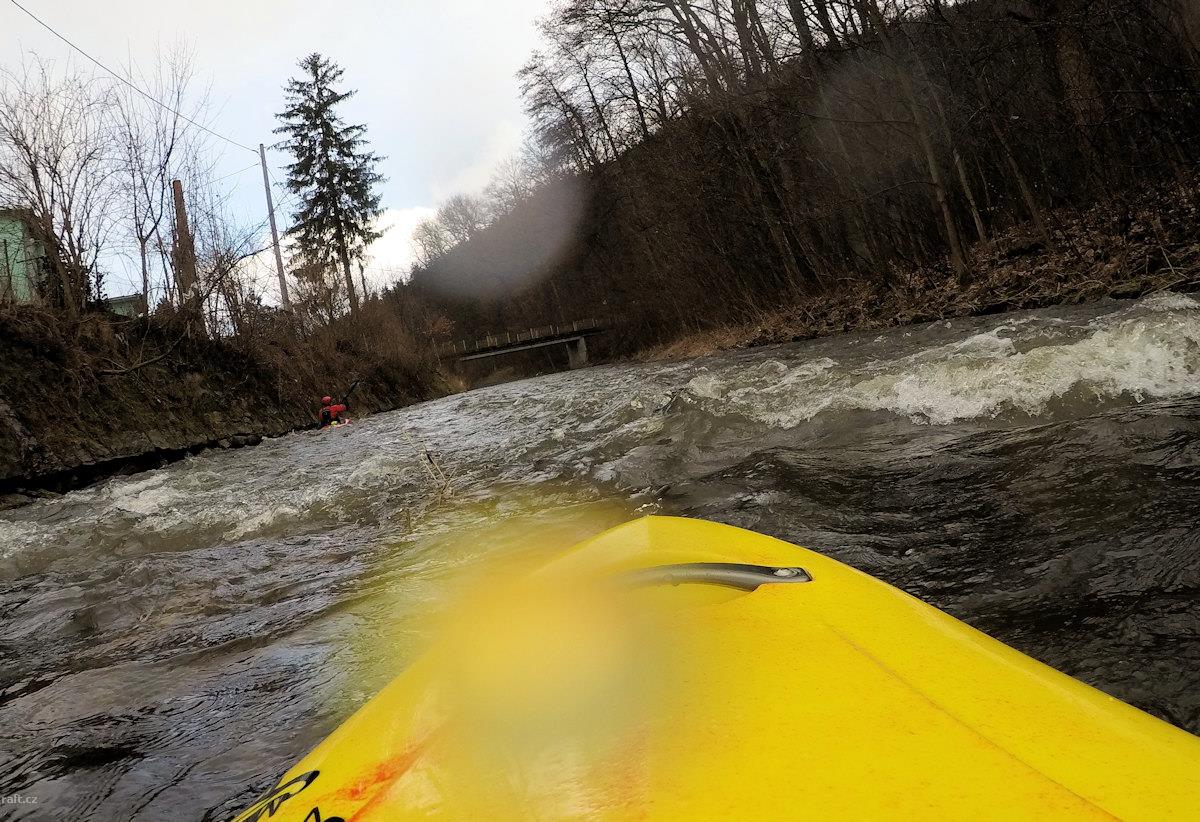 Vypluli jsme z vesnice Dlugopole Górne. Hned za vesnicí v zatáčce, pod příkrou strání k silnici nás ...
