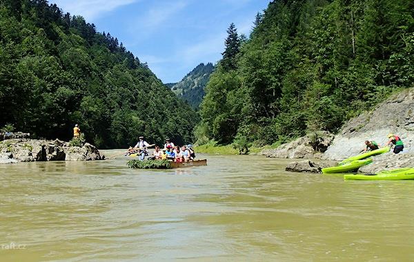 Dunajec je široká peřejnatá řeka, kterou nezastavují téměř žádné jezy a podle toho vypadá i rychlost ...